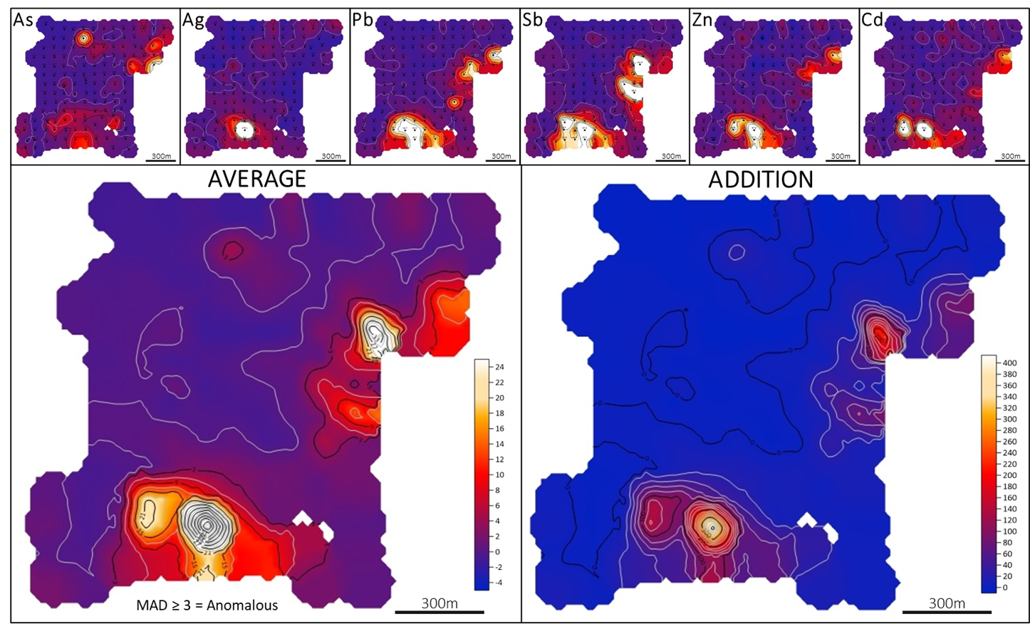 Spatially coherent Ag, Zn, Pb, Sb, As, Cd ++
